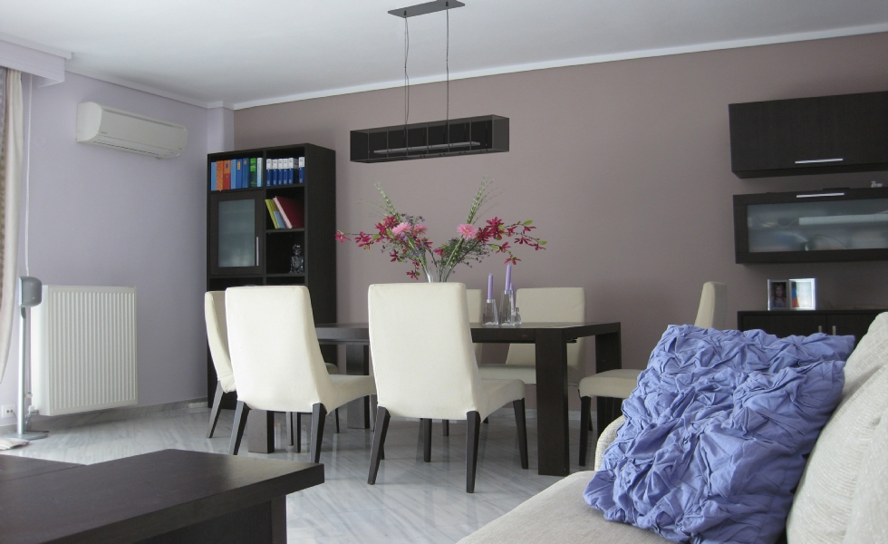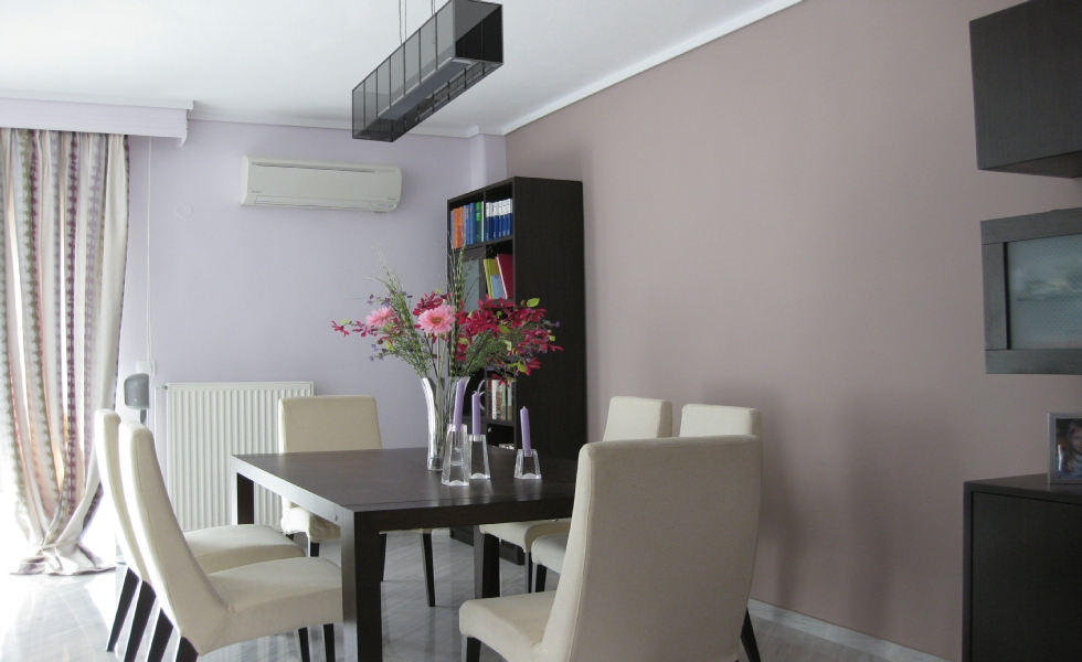 Επιθυμία των ιδιοκτητών ήταν η ανακαίνιση να συνοδεύεται από μια φρέσκια νότα στην εσωτερική διακόσμηση, τα υλικά, τα χρώματα και τις σύγχρονες τάσεις στο design ενσωματώνοντας όμως πολλά από τα υπάρχοντα έπιπλα και αντικείμενα που διέθεταν. Το διαμέρισμα μελετήθηκε βάσει των λειτουργικών αναγκών της οικογένειας και των προτιμήσεων της. Τα υλικά που διατηρήθηκαν καθώς και τα νέα που χρησιμοποιήθηκαν συνθέτουν μία έντονη παλέτα υφών και χρωμάτων, αντιφατικά -