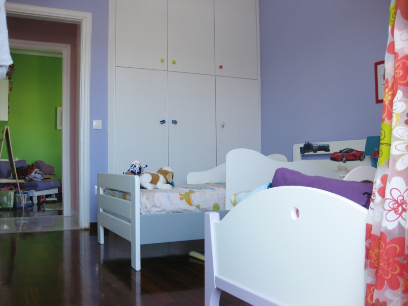 Τα υπνοδωμάτια προς το παρόν διατηρούνται σε δύο καθώς στο τρίτο διαμορφώνεται ένα playroom. Ιδιαίτερη έμφαση δόθηκε στην αποκατάσταση του ακριβού μαρμάρινου δαπέδου. Τα ξύλινα πατώματα στα δωμάτια λειάνθηκαν και επανήλθαν στο φυσικό χρωματισμό τους για να λουστραριστούν με οικολογικά βερνίκια ματ. Τέλος στο διαμέρισμα βάφεται σε χρωματικούς συνδυασμούς που οδηγούν σε ένα ιδιαίτερο αποτέλεσμα.