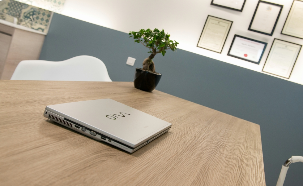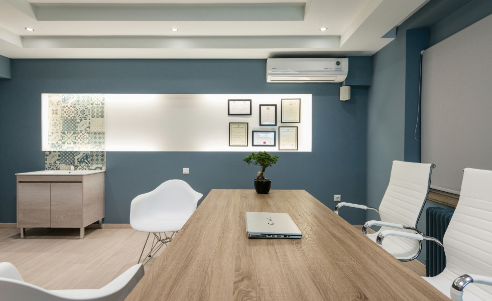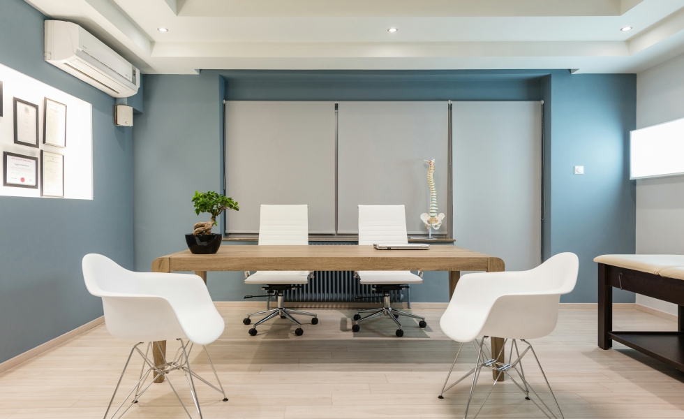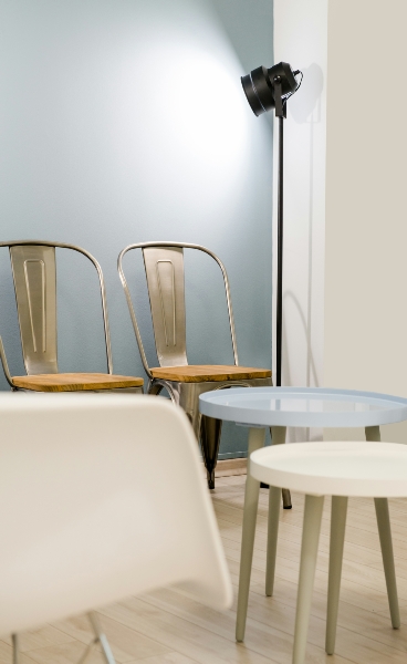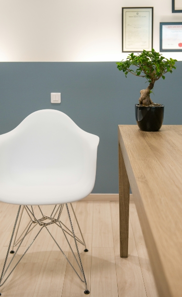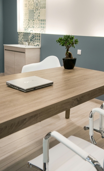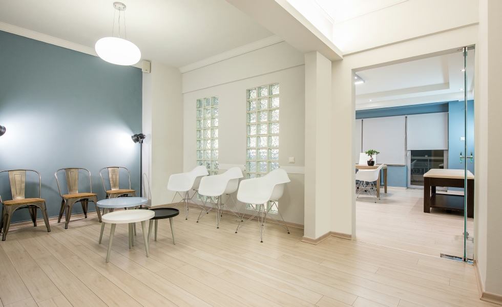 Οι πρώτες ύλες του ξύλου, του γυαλιού και του βιομηχανικού φωτισμού έχουν χρησιμοποιηθεί για να δημιουργηθεί ένα σύγχρονο και φιλόξενο στυλ, τόσο στους χώρους αναμονής όσο και στα δωμάτια θεραπείας. Οι λιτές φόρμες, τα μοντέρνα έπιπλα και τα χρώματα που επιλέχθηκαν -