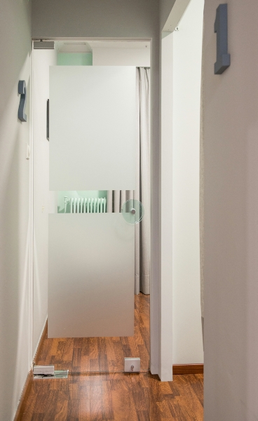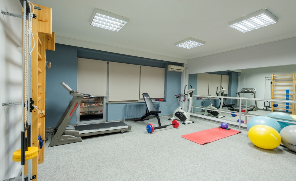 Στο πλαίσιο αυτό διαχωρίστηκαν πλήρως η αίθουσα αναμονής, το γραφείο των φυσιοθεραπευτών και μέσω διαφορετικών διαδρόμων κίνησης εξασφαλίστηκε η ροή προς τους χώρους άσκησης φυσιοθεραπείας και το χώρο του γυμναστηρίου.