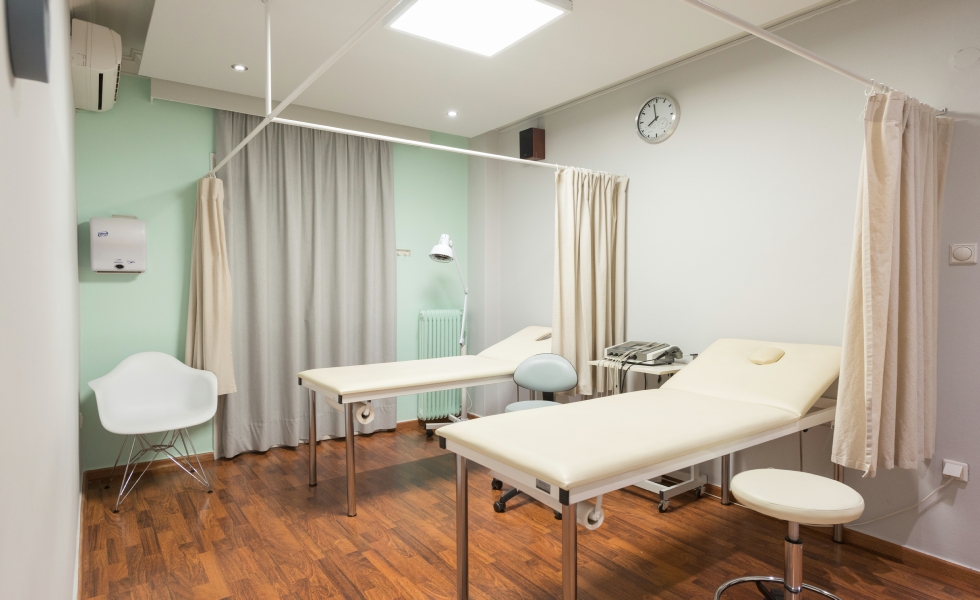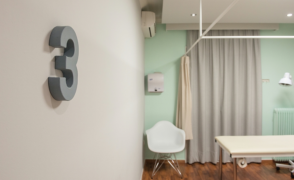 Το εργαστήριο φυσικοθεραπείας στοχεύει στην αποκατάσταση και την ευεξία του ασθενή, λαμβάνοντας υπόψη τις προσωπικές και ιδιαίτερες ανάγκες του. Ο σχεδιασμός του φυσιοθεραπευτηρίου είχε ως στόχο να δημιουργήσει έναν χώρο που να ανατρέπει την ιδέα των στείρων λευκών τοίχων ενός νοσοκομειακού περιβάλλοντος.